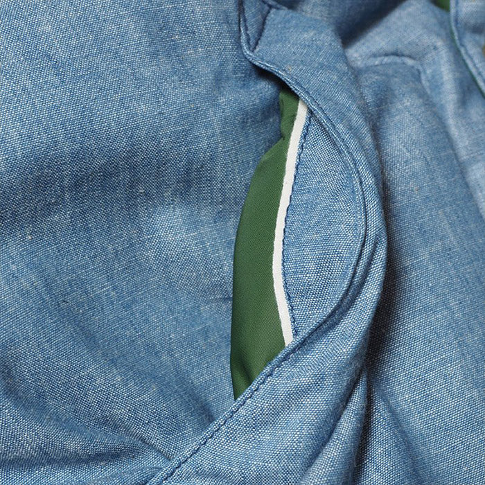今季はウエアハウスのオリジナル、ロープ染色のインディゴシャンブレーの濃淡二色を使用したモデルが登場。