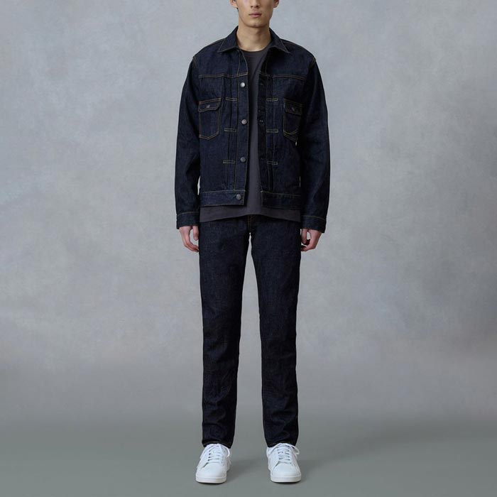 旧式力織機でゆっくりと織り上げた14.7オンスデニム生地は、