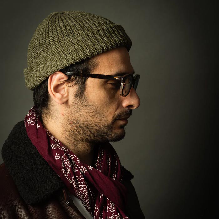 左おでこ部分に織ネームが縫い付けられ、使い込めば使い込むほど頭に馴染み、味・愛着が湧いてくるニットワッチ。