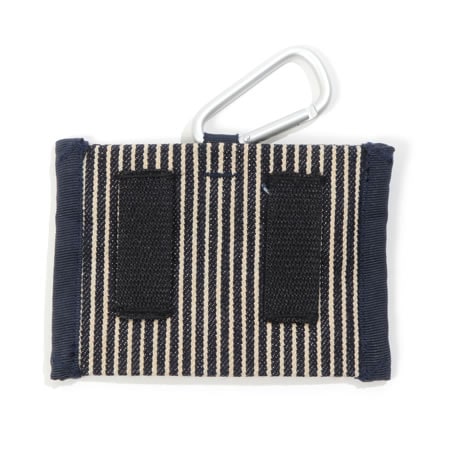 ベルトに通せるように、裏側にループを設けています。また、付属するカラビナで吊り下げられるように、上部に小さなループも付いています。小ぶりなサイズながら、ポーチ上下のマチが開くので、厚みがあるものも入ります。工夫次第で色々な使い方が出来そうです。