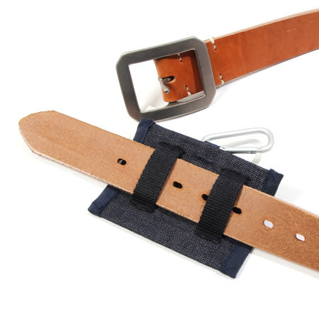 デニム、ヒッコリー、ウォバッシュ、キャメル、そしてブラックの5色で展開するベルトポーチ。いずれもUES定番デニムと同じ14.9ozの厚手の生地を素材に縫製したしっかりとした製品です。