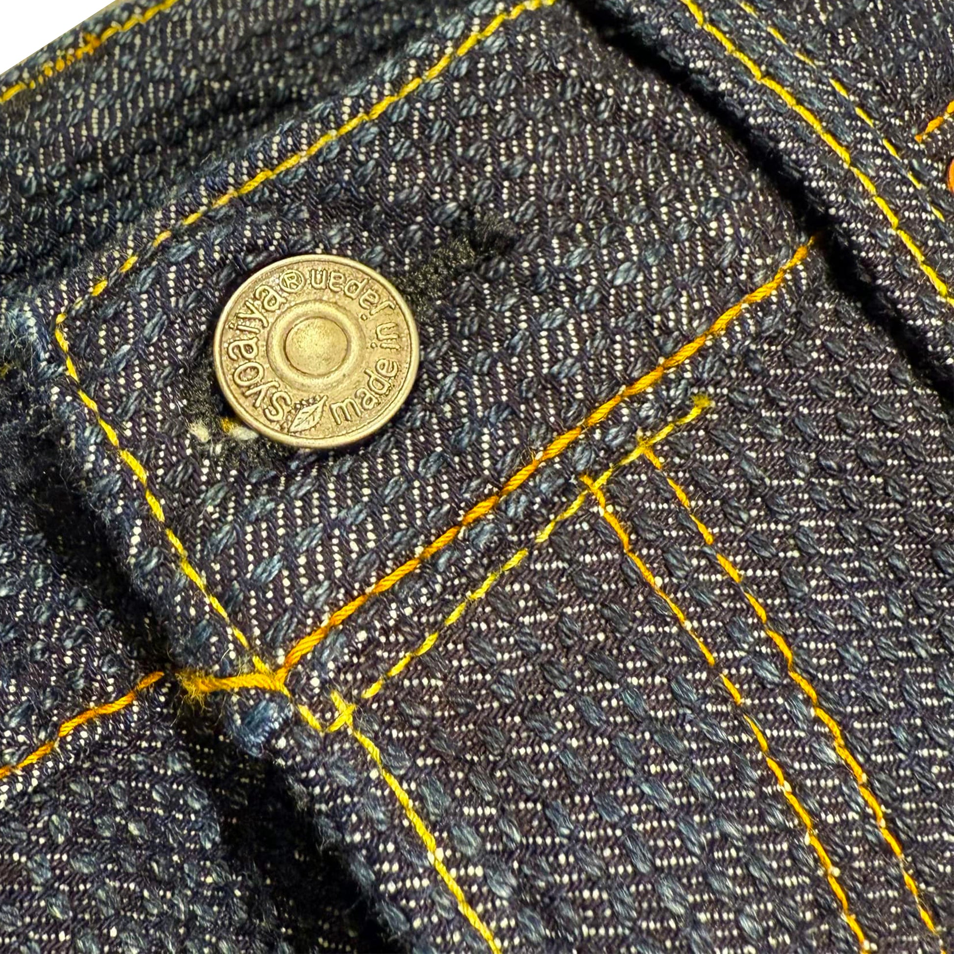 デニムは色落ちをする特性上、洗濯時に擦れや歪みが出てしまいます、ご了承ください。