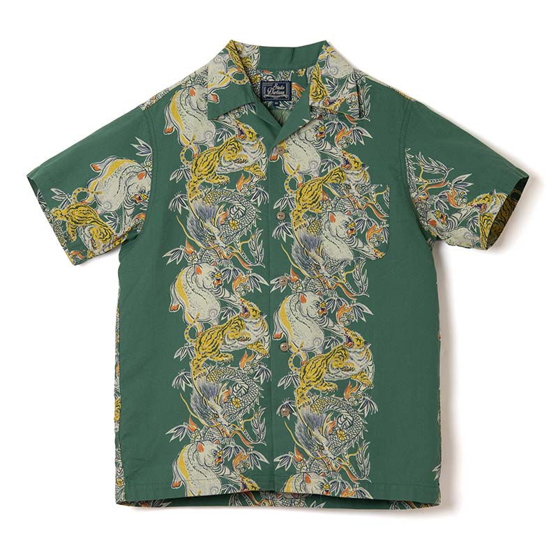 ステュディオ・ダ・ルチザン 5721 トルネード豚アロハシャツ グリーン メンズ 半袖 シャツ