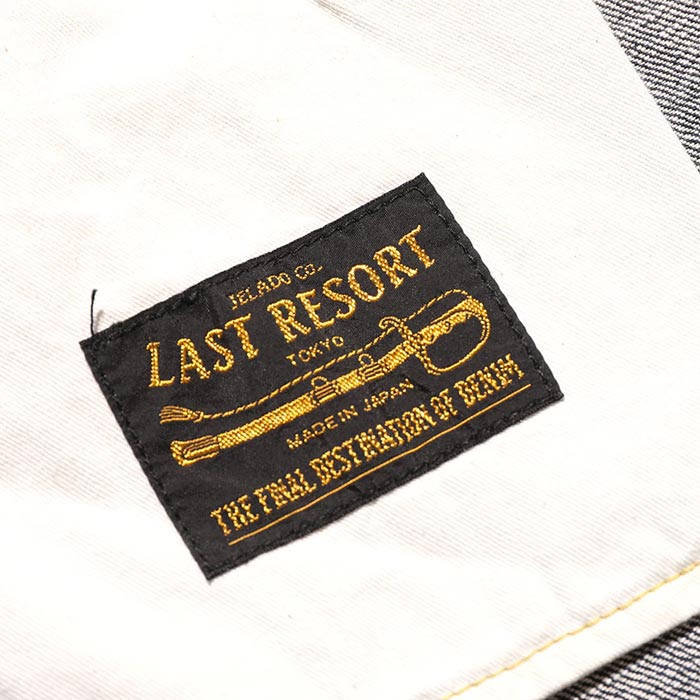 LASTRESORTの黒タグをポケット口に縫い付けました。