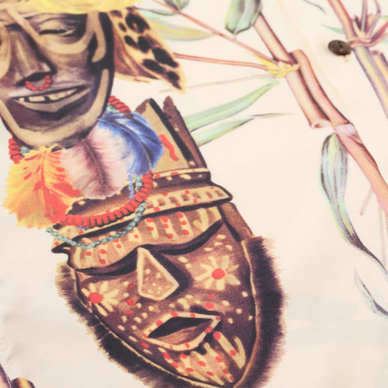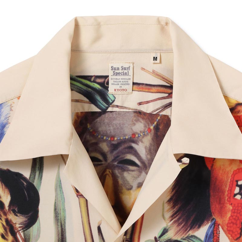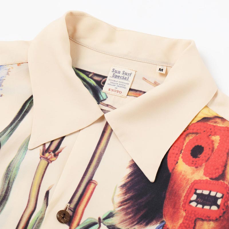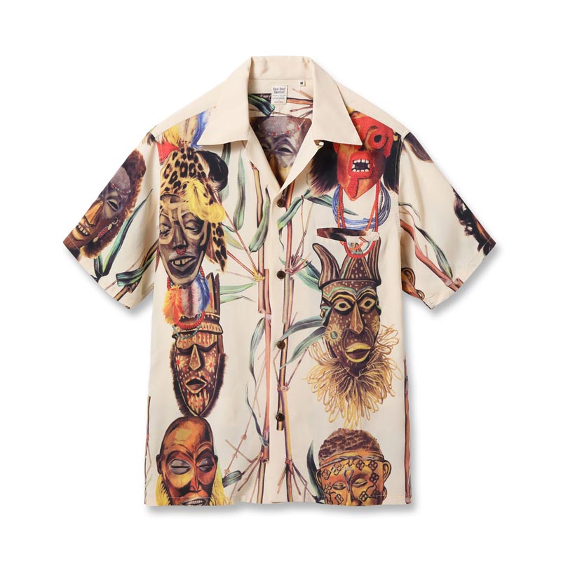 サンサーフ Lot No. SS39481 SUN SURF SPECIAL EDITION “BATTLE MASK” オフホワイト メンズ レーヨン アロハシャツ