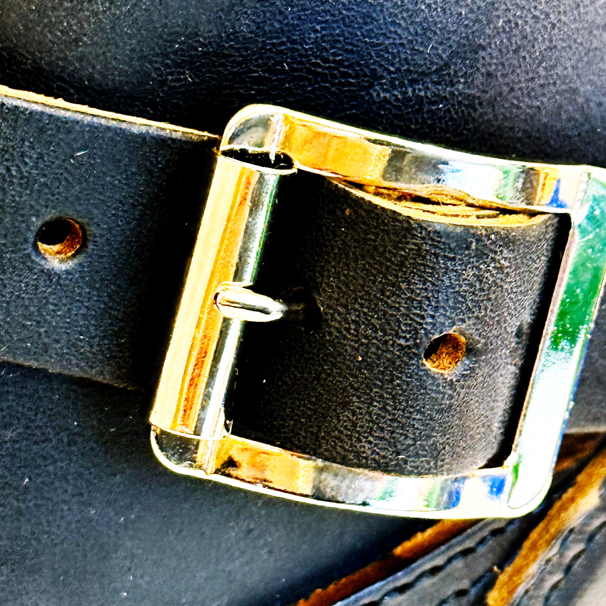 ニッケルメッキのオリジナル薄型スチールプレスバックル。