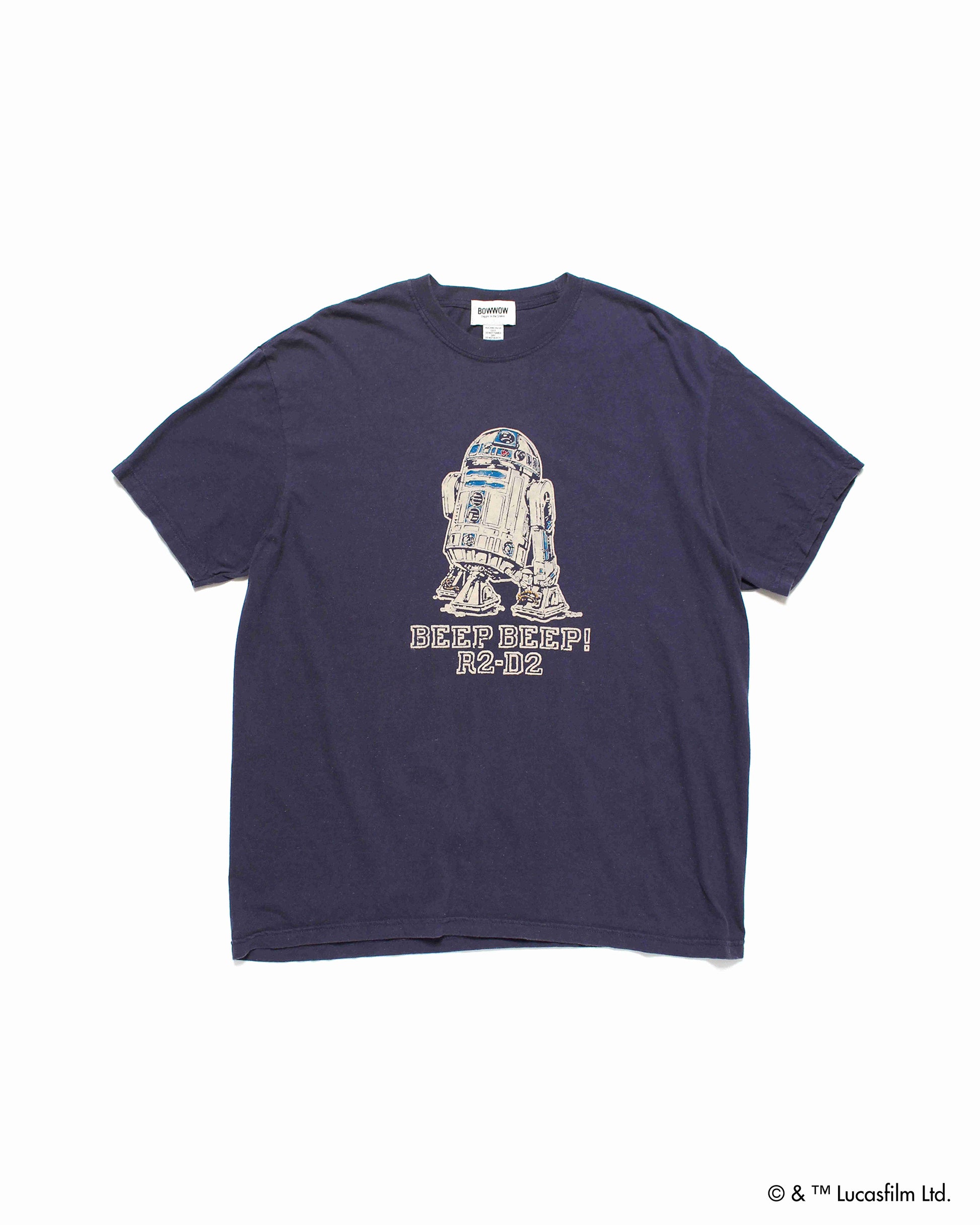 BOW WOWのスター・ウォーズコレクションより、50年代に R2-D2 デザインのフロッキーTシャツが存在していたらと想像して制作された、ヴィンテージを愛するBOW WOWの R2-D2 デザインのTシャツが登場。ヴィンテージさながらの表情で仕上げた植毛フロッキープリントは、現代では再現が難しい技法で、まるで使い古されたリアルヴィンテージのような風合いを持つスペシャルピースです。また、ボディーは経年変化したかの様な雰囲気を楽しめる一枚に仕上がっております。