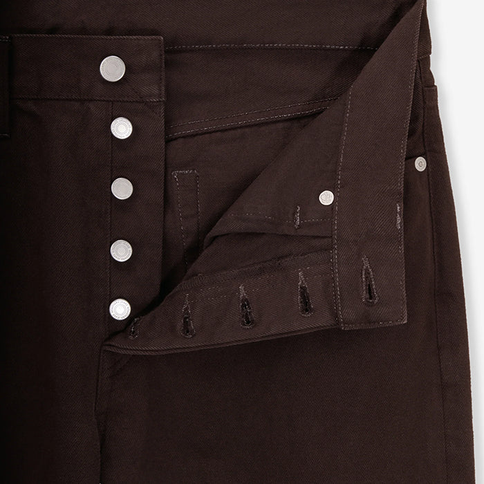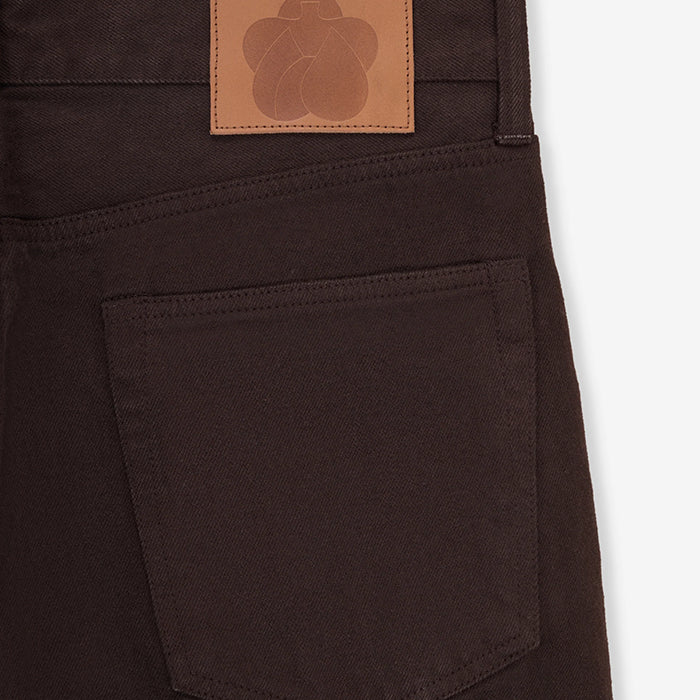 日本に古くから自生するオニグルミの殻や外皮から抽出した天然染料を用い、深みのあるオリジナルのブラウンに染め上げた15ozのデニム。