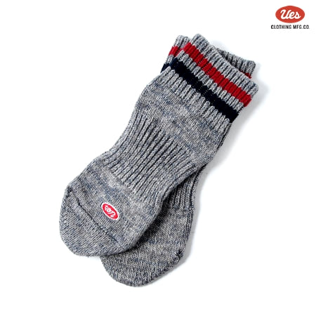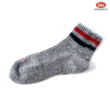 ライン入りスニーカーソックス グレー×紺赤ライン