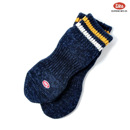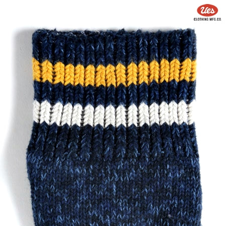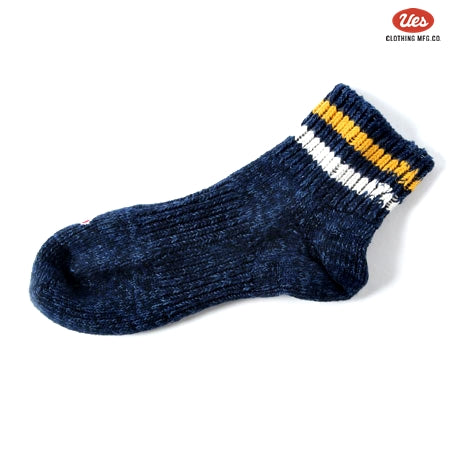 ライン入りスニーカーソックス ネイビー×白黄ライン