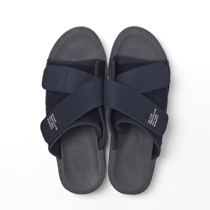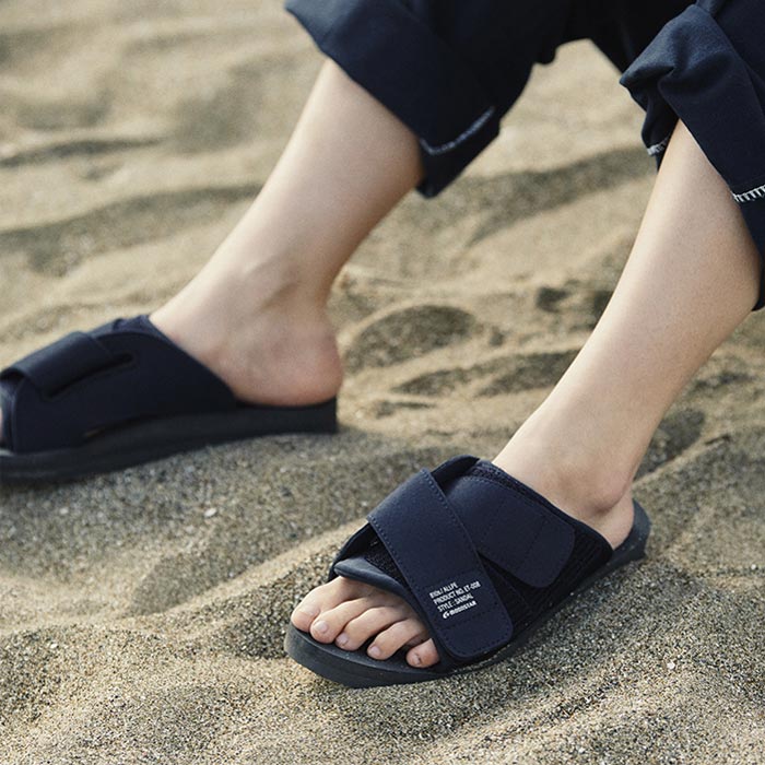 ユニバーサルデザインの心地良さをデイリーユースに。 スポサンよりも気軽でスライドよりもフィット性を高く。 履く人に合わせた位置でベルトを固定できる簡潔な構造のサンダルタイプ。