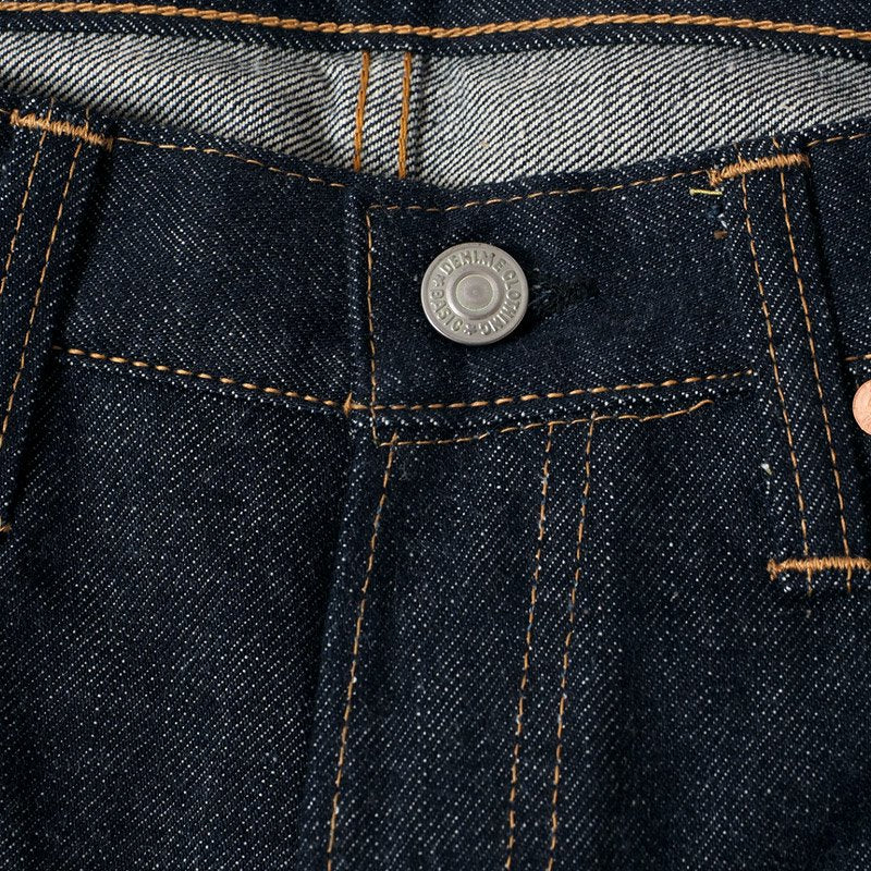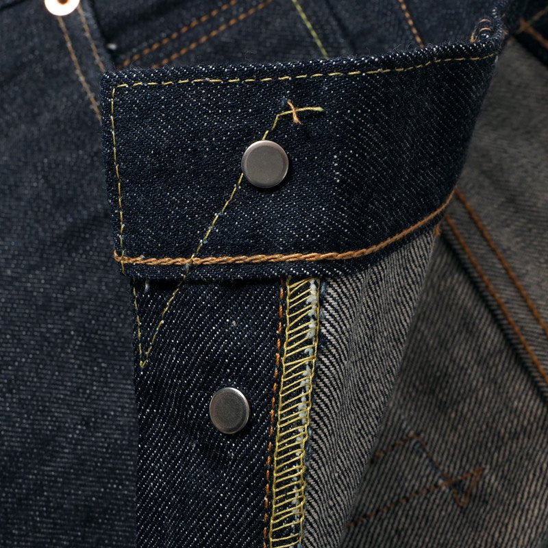 DENIMEらしい紙タグの風合いや縫製糸の色使い、