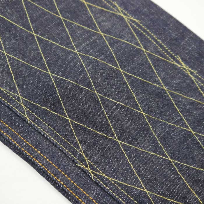 染色は黒みを加えた濃インディゴを独自のレシピでロープ染色しています。
