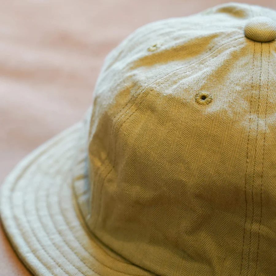 アンパイアキャップをベースに、ブリムの硬い芯を排除し、中に不織布を入れております。